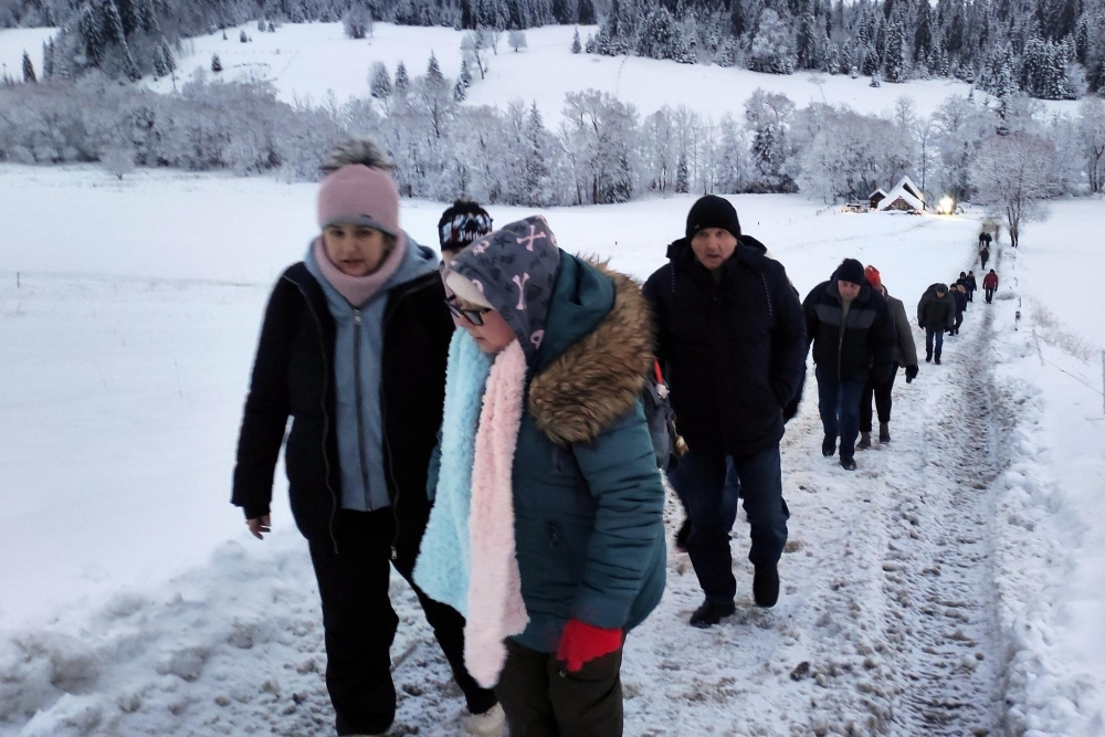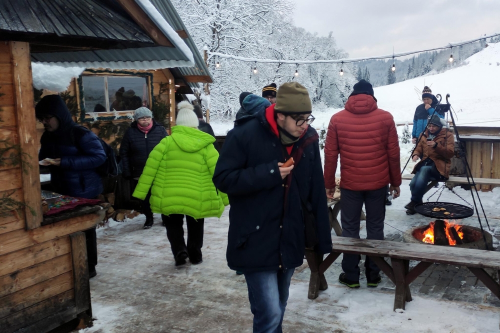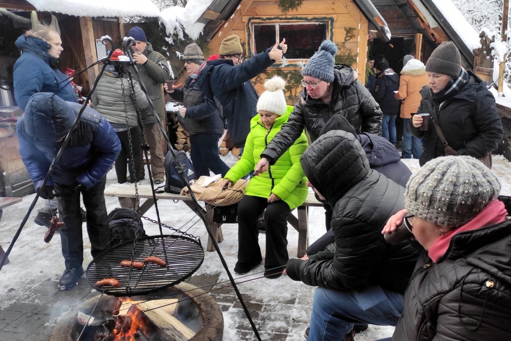 To były dwa bardzo intensywne dni spędzone u samućkich Tater. Tym razem nie chodziliśmy po górach, ale skorzystaliśmy z tego, że nasypało mnóstwo śniegu - więc kulig w Murzasichle! Pogoda dopisała, humory również, nikt się nie skarżył, że zimno. Tym bardziej, że po kuligu czekał na nas góralski poczęstunek i ognisko. W takich okolicznościach chleb ze smalcem i kiszonymi ogórkami smakował wyśmienicie, a grillowany oscypek z żurawiną dopełniał smaku. Nazajutrz spacerowaliśmy po Zakopanem, zwiedziliśmy chałupę Gąsieniców. Interesująca była też wizyta w „Podwodnym Świecie”.