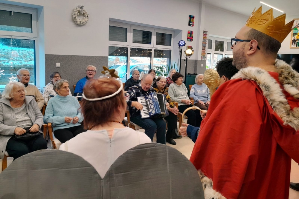 Kilka dni temu Milusińscy z Filii B odwiedzili seniorów z Filii C, by wspólnie pośpiewać nasze piękne kolędy. Mimo swojego już sędziwego wieku, Pan Bronek wspaniale przygrywał na akordeonie i sprawił, że nasze wspólne kolędowanie miało swojski, ale jakże radosny i tradycyjny klimat. To było miłe, integracyjne spotkanie, któremu towarzyszyły muzyka, śpiew oraz mnóstwo uśmiechu. Hej kolęda, kolęda!