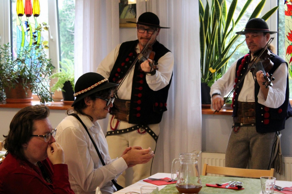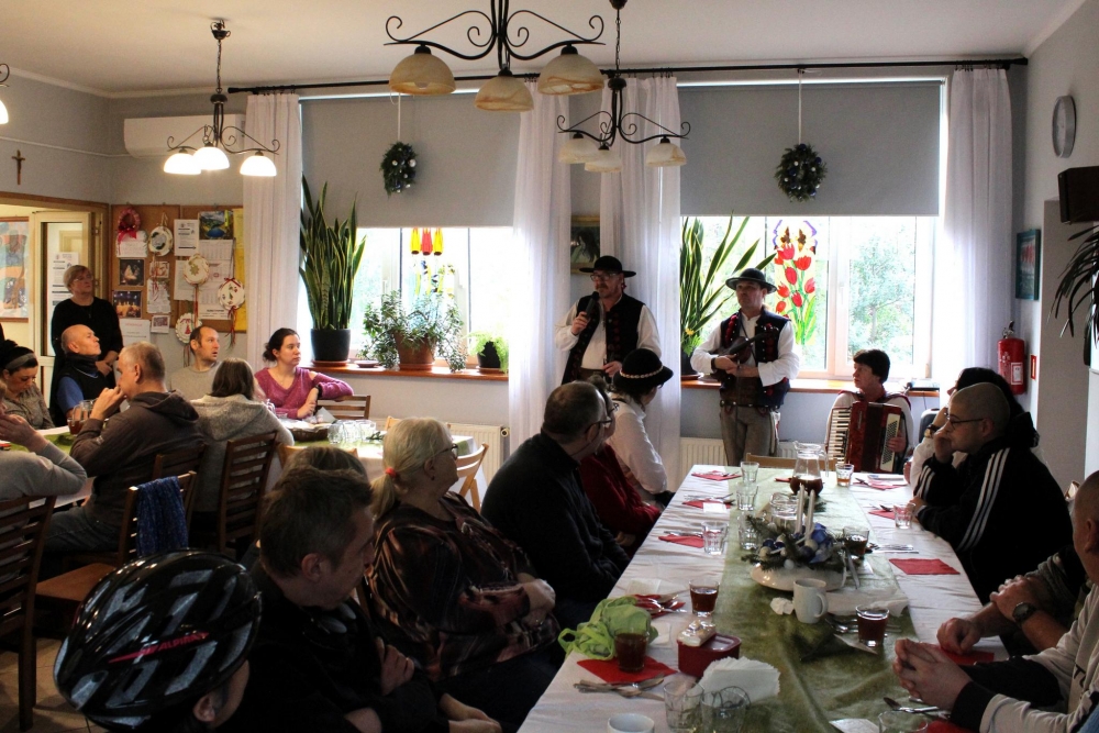 W czasie świąt Bożego Narodzenia jest piękny zwyczaj wspólnego dzielenia się opłatkiem, składania sobie życzeń, śpiewania kolęd. Tym razem śpiewaliśmy przy akompaniamencie skrzypiec i akordeonu. Pięknie grali nam goście z Kapeli Góralskiej Ondraszki.
