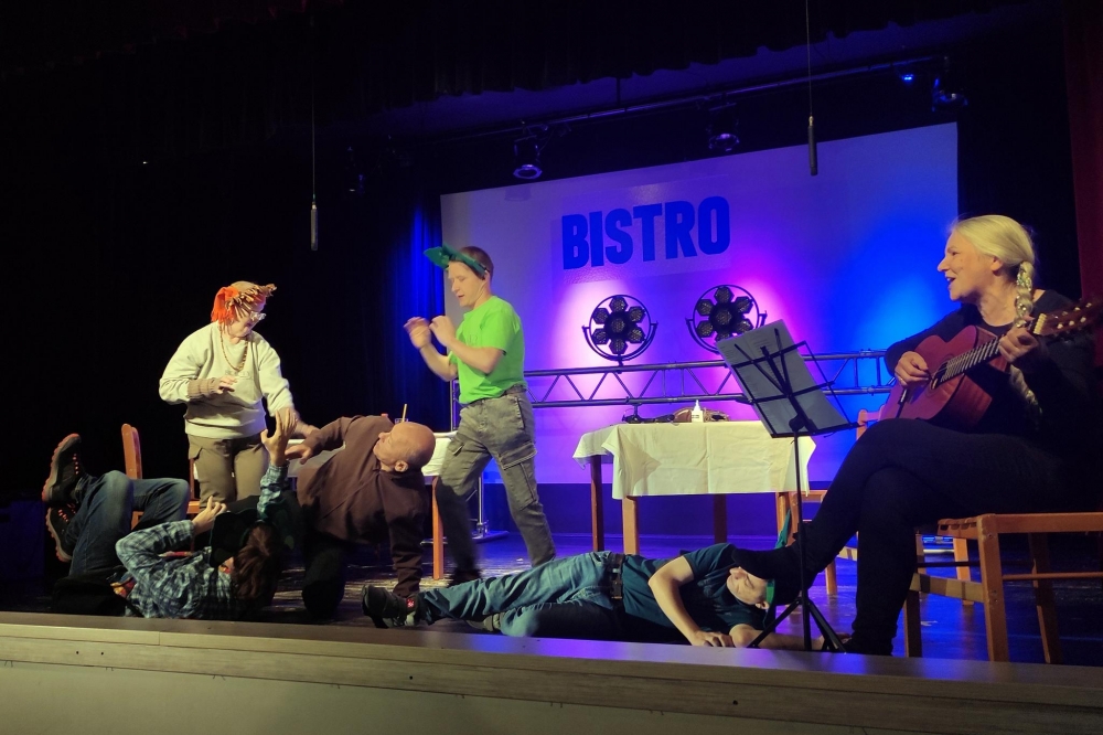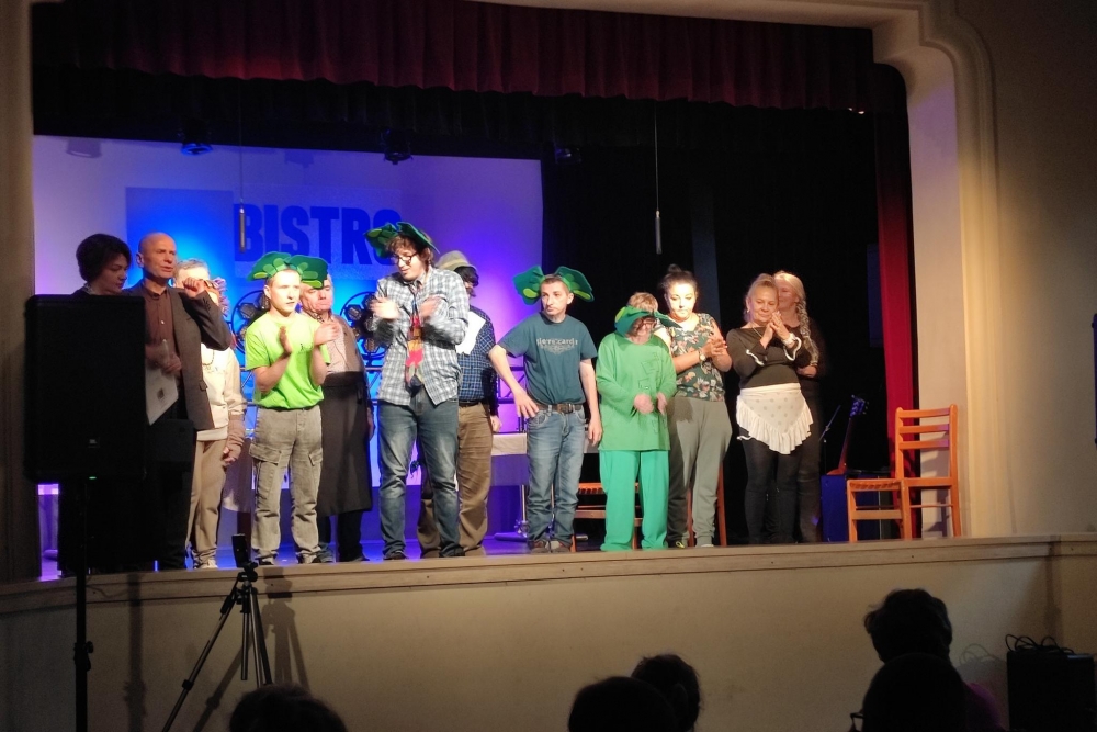 Dziewiątego października br. w zaprzyjaźnionym z nami Domu Kultury w Bielsku-Białej Lipniku z okazji Światowego Dnia Zdrowia Psychicznego grupa naszych Uczestników zaprezentowała przedstawienie pt. „Bistro”. Przedstawienie zrealizowano w ramach programu ZDROWIE PSYCHICZNE. Spektakl był pomysłem Uczestników naszego Domu, opierał się na ich osobistych doświadczeniach. Na wspólne oglądanie zaprosiliśmy naszych bliskich i przyjaciół, goście dopisali, bawili się znakomicie - bo po części teatralnej był Bal Integracyjny, z grami i zabawami, i kolorowymi światłami, i oczywiście z Królową i Królem Balu.