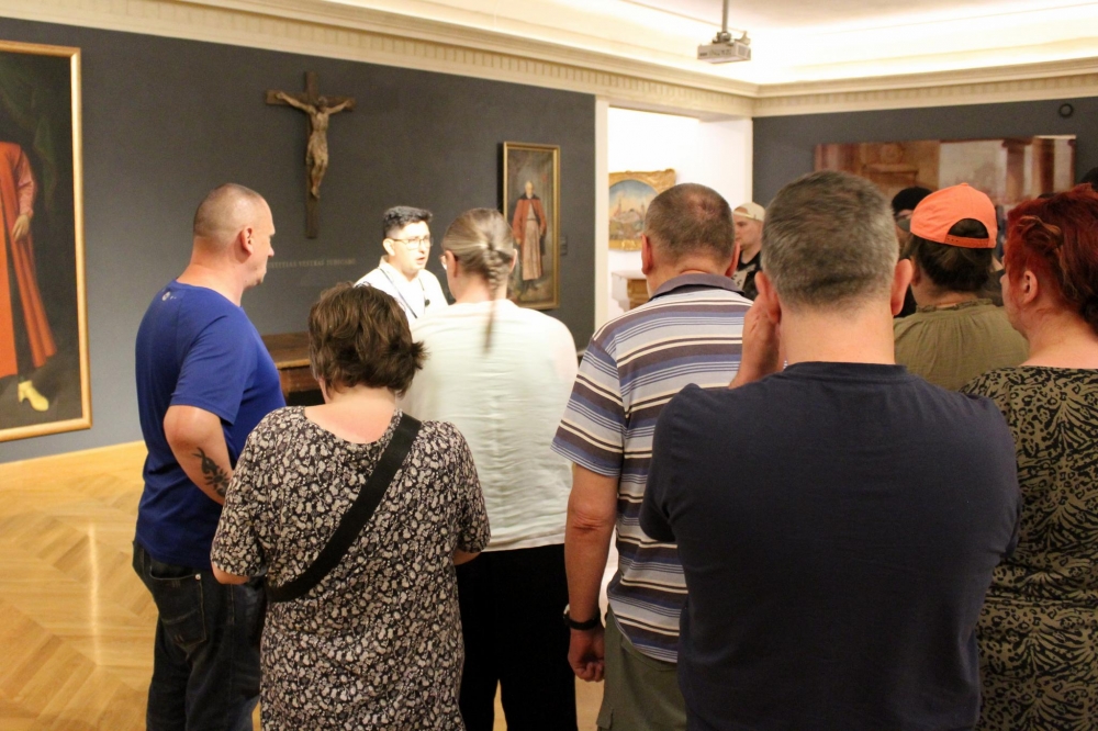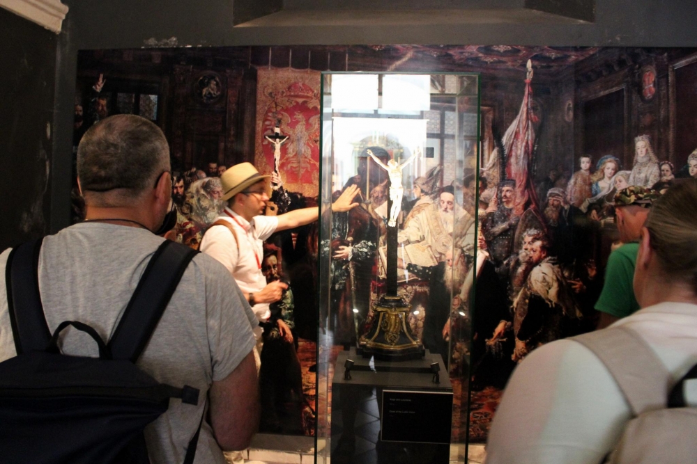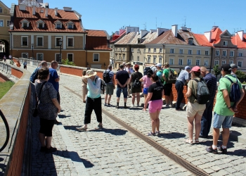 Kaplica Trójcy Świętej znajdująca się na Zamku w Lublinie jest jednym z najcenniejszych zabytków sztuki średniowiecznej w Polsce i w Europie. Doskonałe zespolenie gotyckiej architektury z bizantyńsko-ruską polichromią wnętrza czyni z niej zabytek unikatowy w skali międzynarodowej. Mieliśmy okazję zwiedzić kaplicę, i podziwiać freski powstałe przed rokiem 1418. Przewodnik dokładnie zapoznał nas z historią kaplicy, potem oprowadził po niektórych wystawach zamku, a na koniec zabrał naszą grupę na wycieczkę po Lublinie, po jego najstarszej części. Upał dawał się we znaki, ale nas to nie zniechęcało. Lublin pełny jest historii, bywali w nim królowie, pisarze, poeci. Na każdym kroku można zobaczyć coś ciekawego, i znanego z historii Polski.