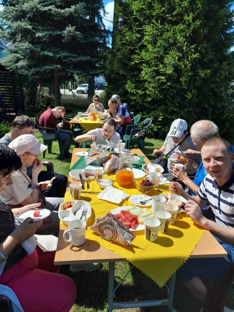 W ostatnią środę nasi Milusińscy z filii B wybrali się w odwiedziny do Domu Pomocy Społecznej "Przystań". Personel i mieszkańcy zaprzyjaźnionej placówki jak zawsze wspaniale nas ugościli! Najpierw uczciliśmy lato wierszami wyrecytowanymi przez seniorów, by później wspólnie pośpiewać znane przeboje. Jak zawsze było pysznie, a atmosfera jaka panowała była prawdziwie wakacyjna i wesoła!
